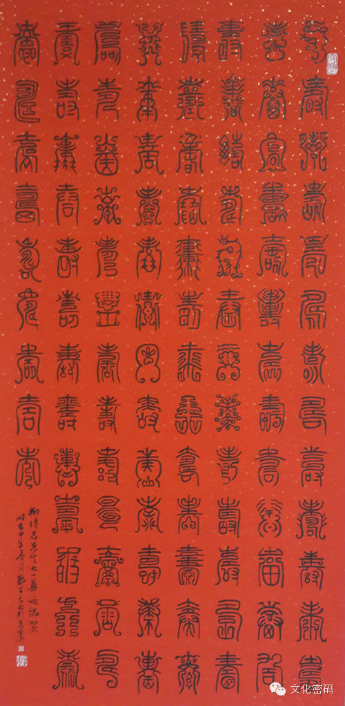 图为著名书画家郭子良先生书写《百寿图》