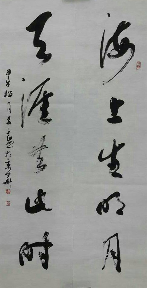 郭子良作品《海上生明月 天涯共此时》 对联