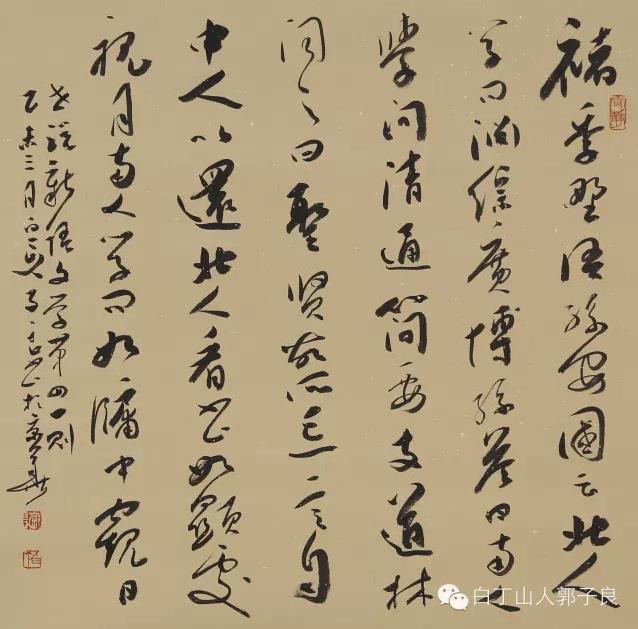 作为现代书画艺术的集成者、华夏传统文化的弘扬者,郭子良除了诗书画印的与日凝练外,其艺术人生已经与传统文化紧密的结合在一起。他说:“七分功夫在画外。探索研究书画艺术,离不开深厚的文化底蕴和修养内涵,离不开潜心学习与继承传统。初学书法之时,我就感叹于中国书画艺术的精妙绝伦,感叹于中国文化的博大精深。文以载道,艺术家负有神圣使命;让书画印传承经典,延续文化血脉,需要我辈自牧躬行。”